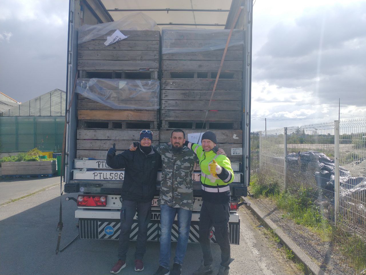 Aujourd'hui, vos dons organisés en dix-huit palettes sont partis de Nantes en direction de la Pologne avec les chauffeurs de la Protection Civile !