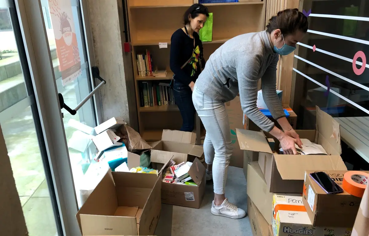 Des bénévoles ukrainiennes de l'association Tryzub trient les premiers dons en provenance de la région nantaise.